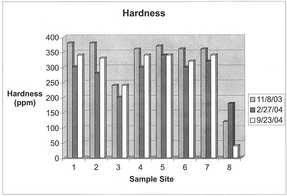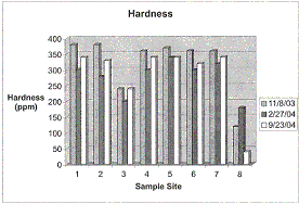 phosphates, turbidity, ammonia, nitrates, hardness, temperature, and